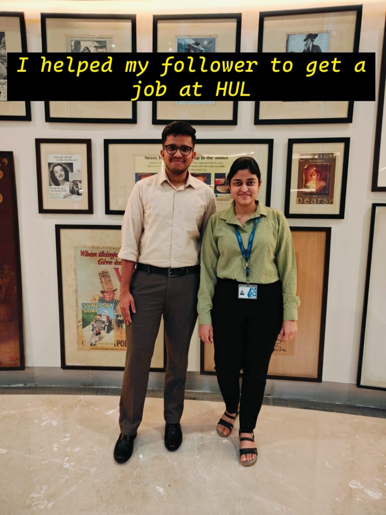 Chinmaya, I made it to HUL, thanks for connecting me”